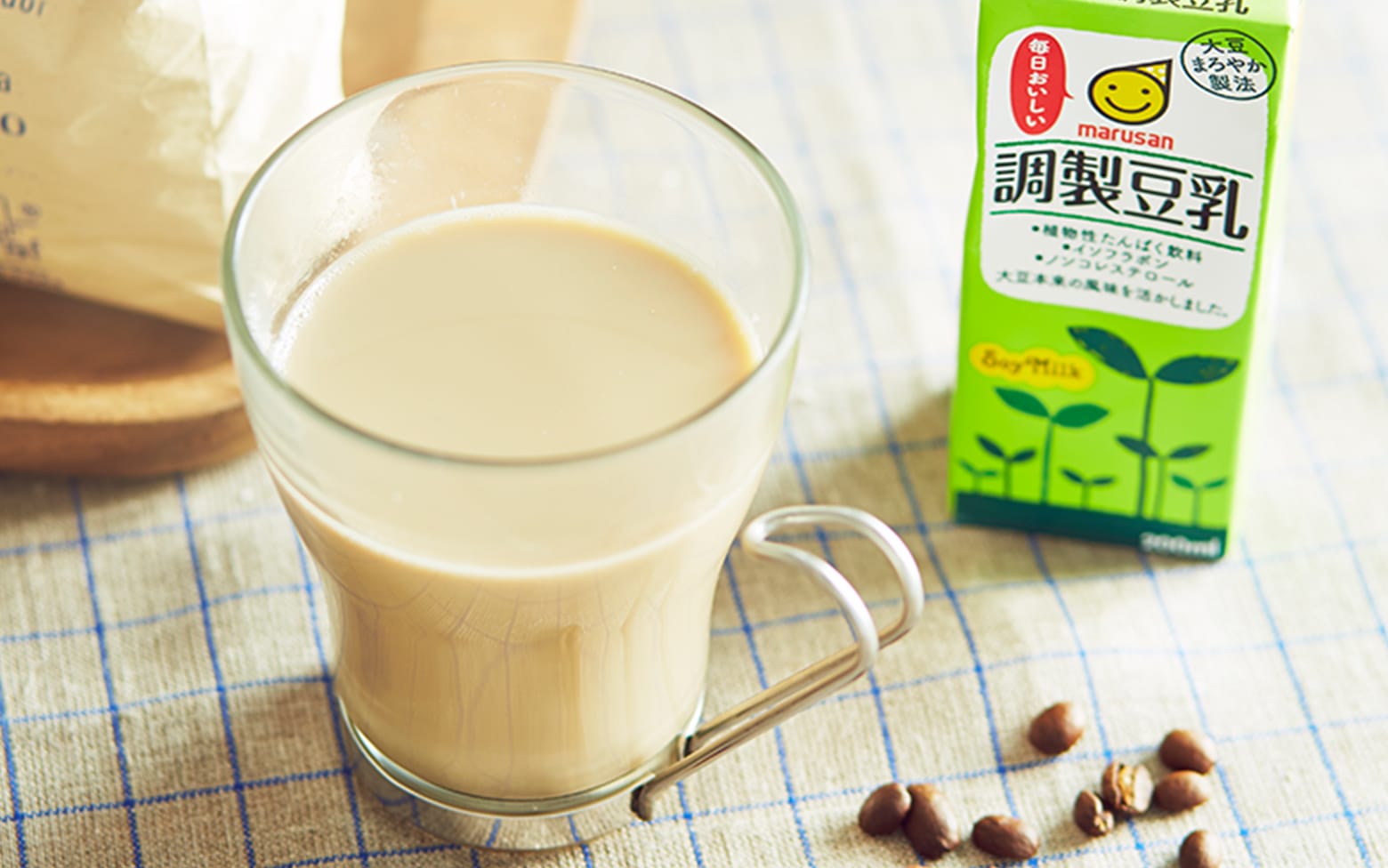 エスプレッソマシンがご自宅にある場合は、抽出したエスプレッソに温めた豆乳を注ぐと、味わい深くより美味しくいただけます!