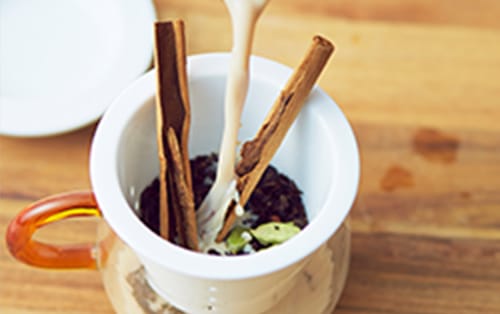 茶こしなどでスパイスと茶葉を漉して、ポットやカップに移す。