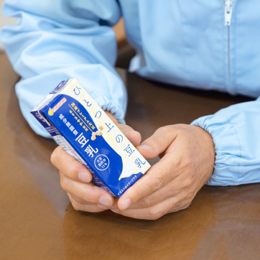 大豆という栄養価の高い優れた食材を摂取していただくために、いかにおいしい豆乳をつくるか。その想いで弊社は試行錯誤しながら豆乳づくりを続けてきました。豆乳の不快味となる大豆の酵素リポキシゲナーゼが作り出す青臭みを消すために、何度も製法を改善。その過程で豆乳は加工が少ないため原料の特性が出やすいことに着目し、大豆の研究も開始しました。