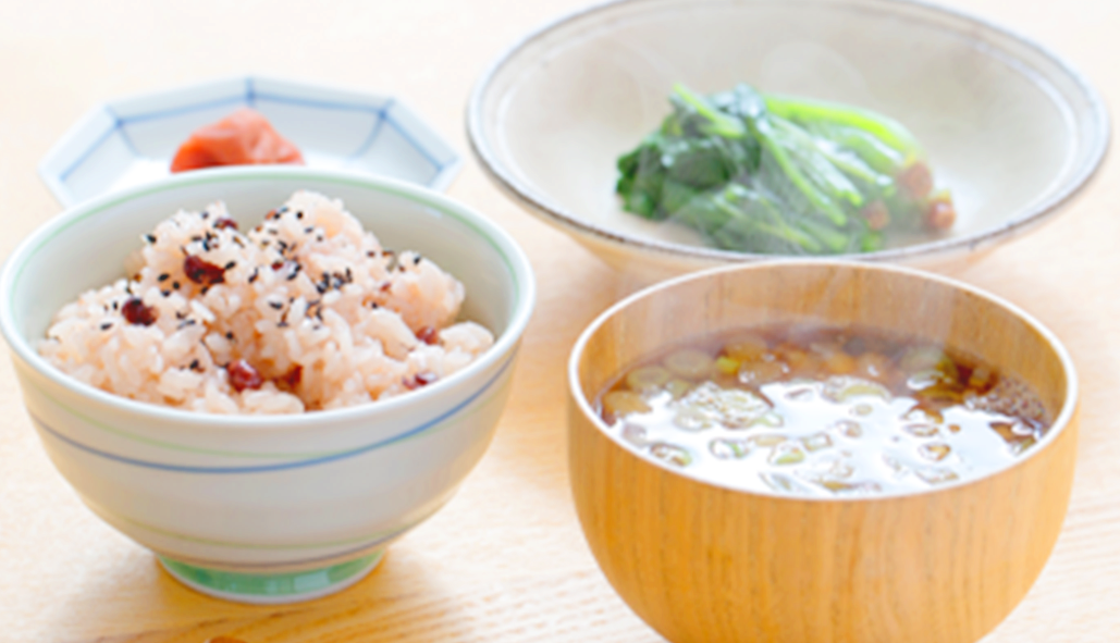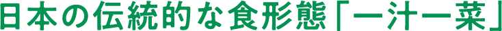 日本人の畜肉類の摂取は仏教伝来(飛鳥時代[592~710])以降なくなり、この状態は江戸時代後半(1800年代半ば頃)まで約1000年以上も続きました。その間日本人の食事は、穀類、芋類、豆類、野菜類が中心でした。日本の有名な伝統的食形態「一汁一菜」は、玄米などのご飯を主食とし、汁物(味噌汁)とおかず一品(魚や野菜)、さらに香の物(漬物)を添えるのが一般的で、漬物から生きた乳酸菌を摂取していました。
