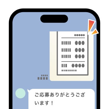 ⑦トーク画面の案内にそって、撮影したレシート画像をアップロードし、「ご応募ありがとうございました」というメッセージを受信したらご応募完了です。