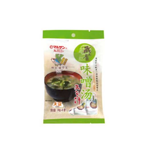 原材料:米みそ【大豆(遺伝子組換でない)、水、米、食塩】、水、酒精、砂糖、L‐グルタミン酸ナトリウム、食塩、鰹節粉、わかめ、5´-リボヌクレオタイドナトリウム