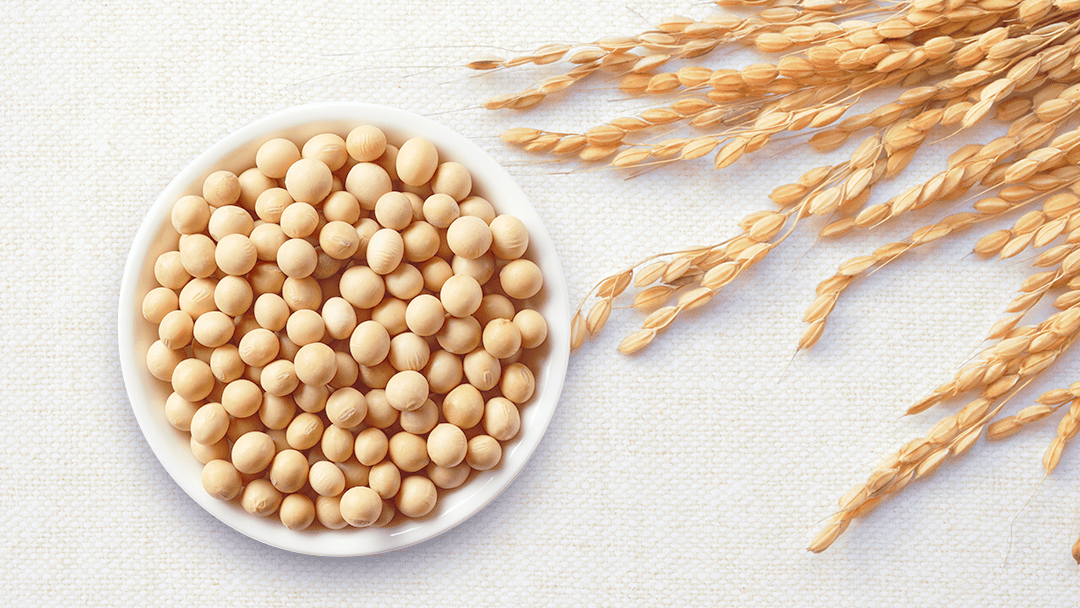 北海道産大豆「とよまさり」:昨今の全国味噌品評会受賞商品で最も使用されている大豆であり、みそ業界が選ぶ、みそに最適な大豆です。 -