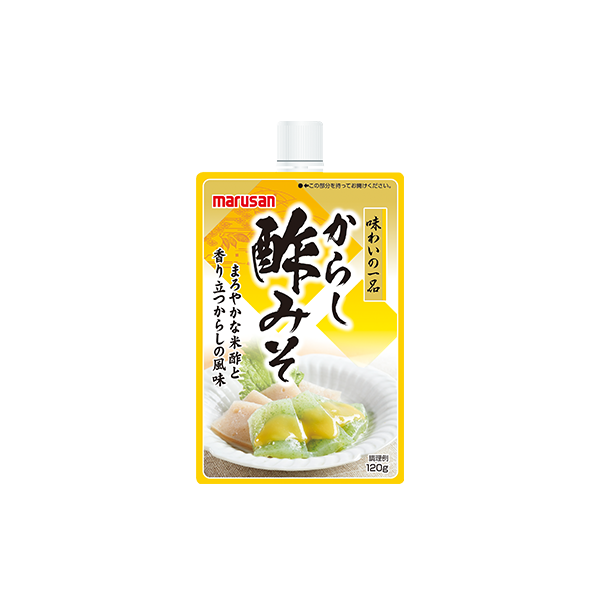 ほんのり甘い京風白みそと信州米みそをブレンドし、まろやかな米酢と香り立つからしをほどよく加えた、風味豊かなからし酢みそです。