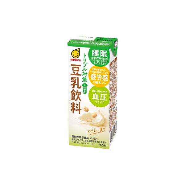 低糖質(※)でコレステロール0、やさしい甘さですっきり仕上げの豆乳飲料です。豆乳で初めて3つの機能性を表示した機能性表示食品です。GABAの働きにより、