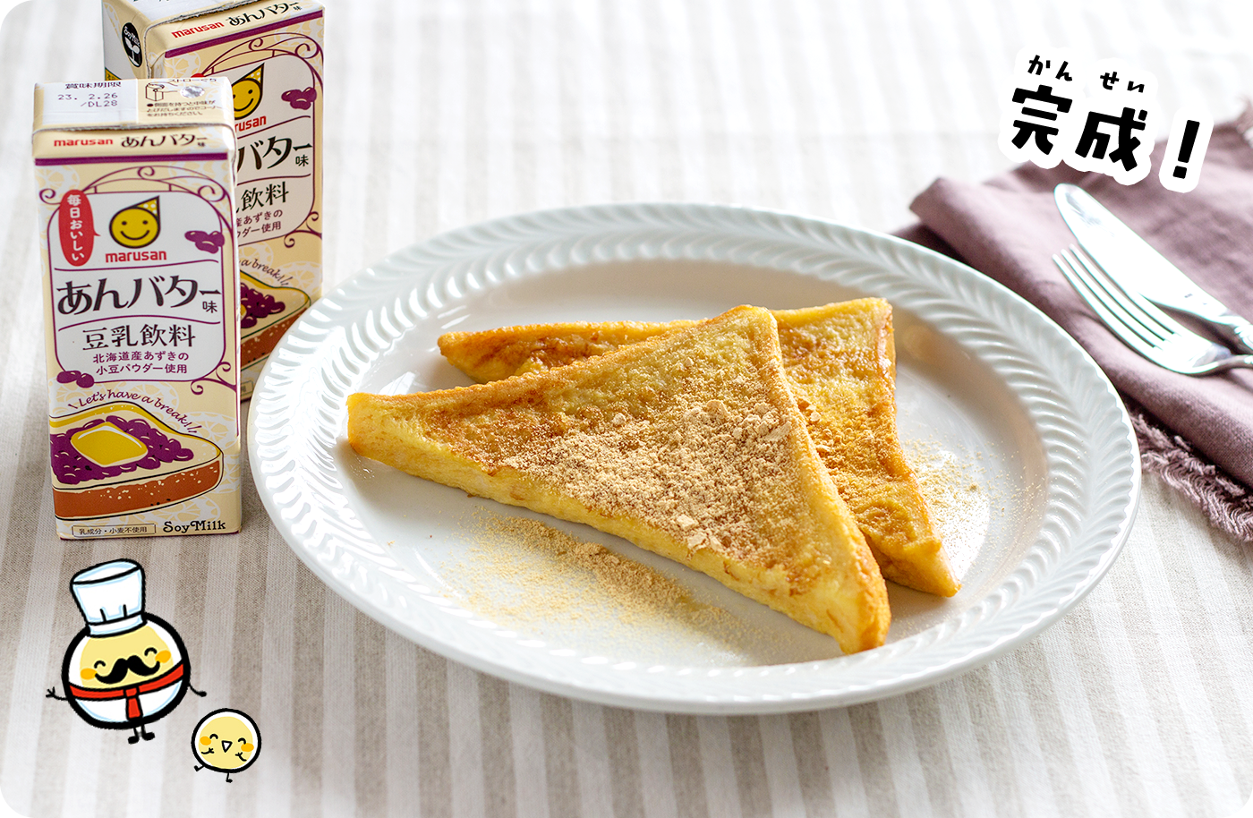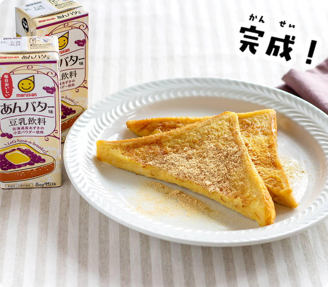卵 をよく溶 いて、豆 乳 飲 料 あんバター味 100mlを加 えてよく混 ぜる