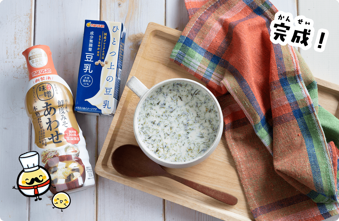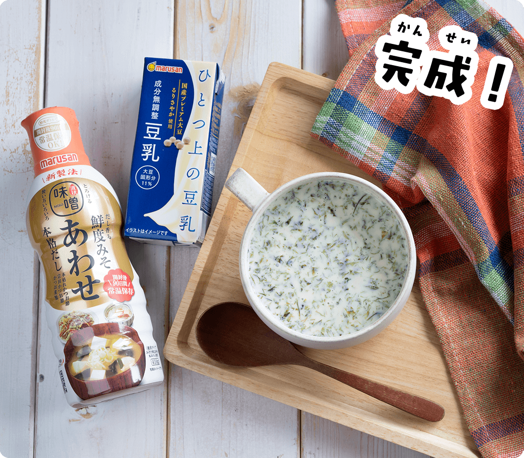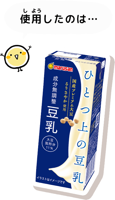 上 の豆 乳 無 調 整 」を入 れ、電 子 レンジ600Wで1分 20秒 ~1分 40秒 温 める。