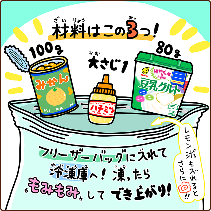 平 らにした状 態 で、冷 凍 庫 で90〜120分 凍 らせる。