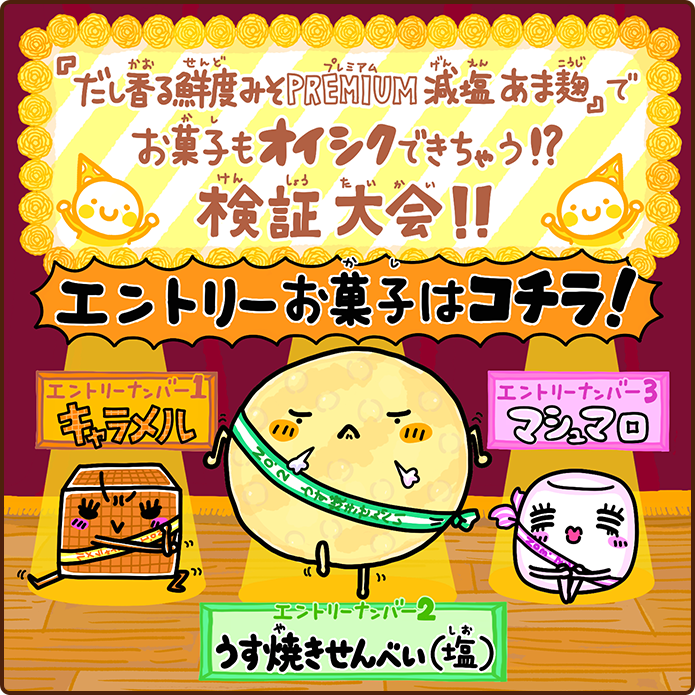 袋 の上 から混 ぜ、おせんべいに「鮮 度 みそ減 塩 あま麹 」をからませる。