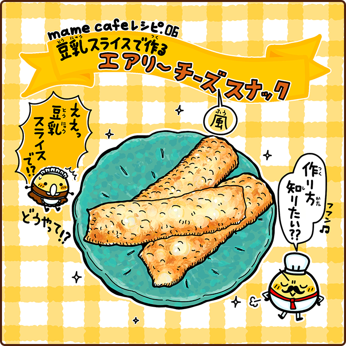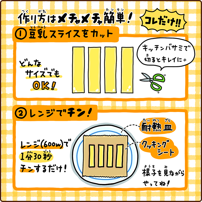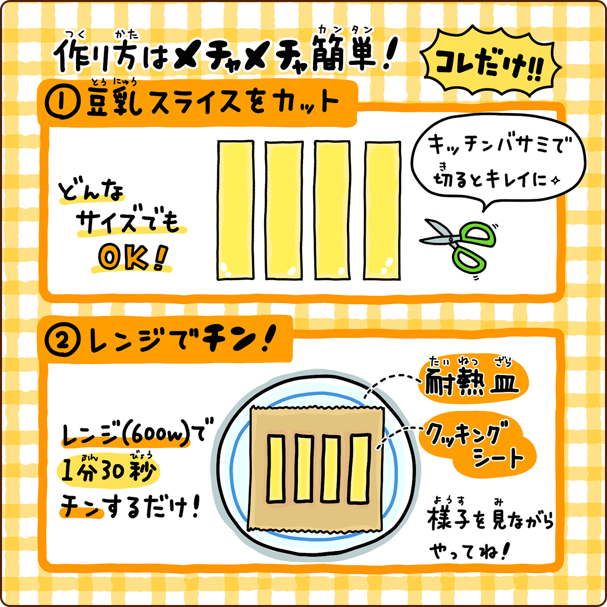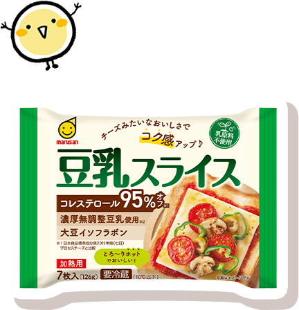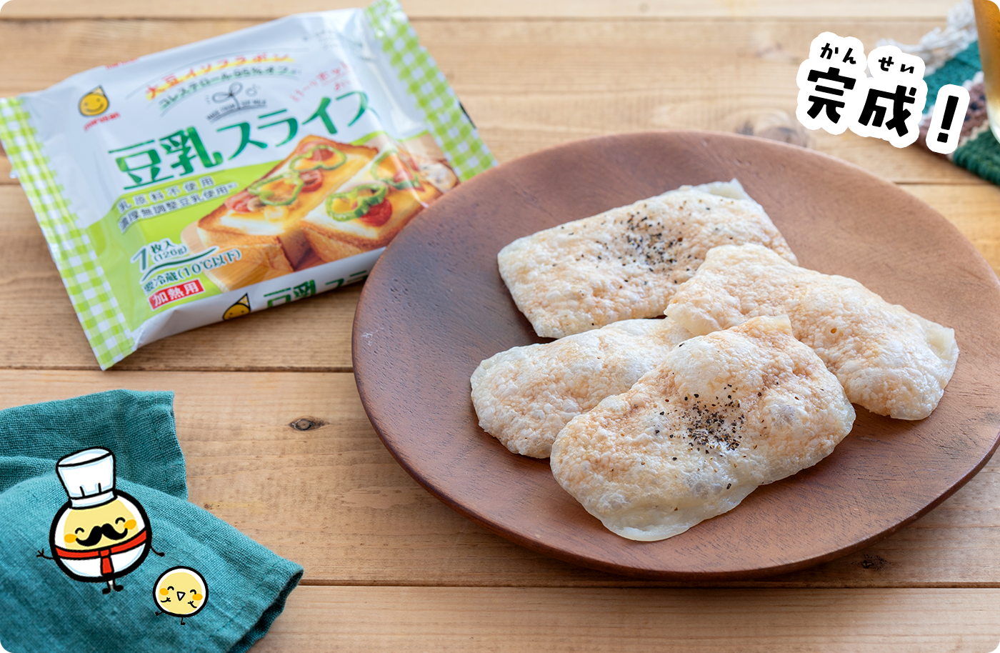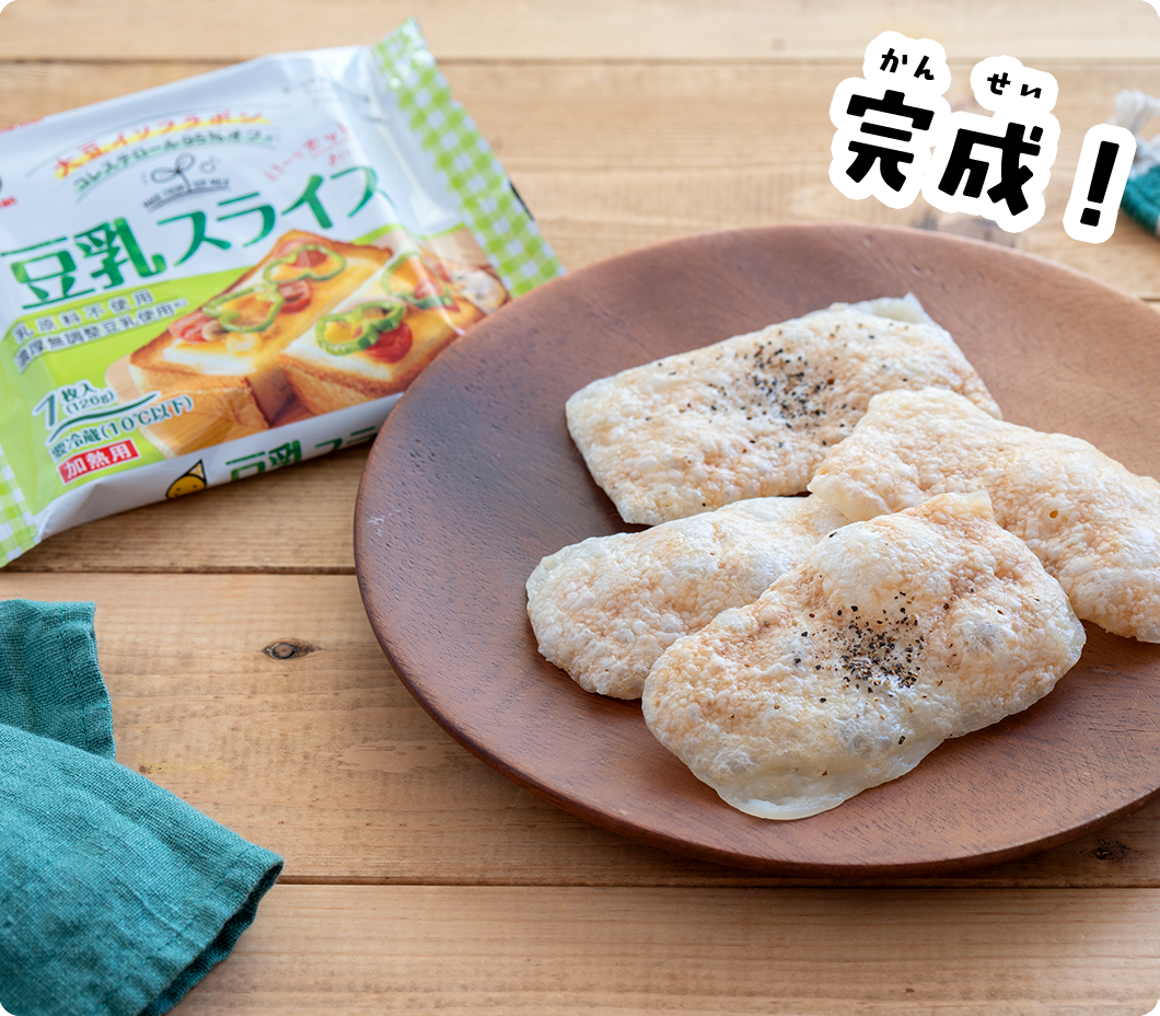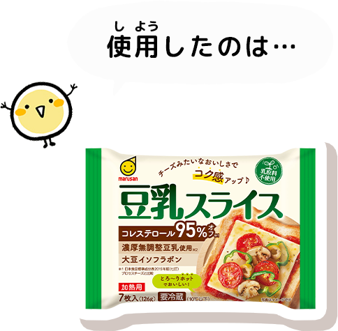 豆 乳 スライス1枚 を食 べやすい大 きさにカットする。