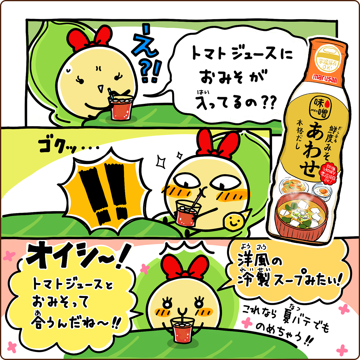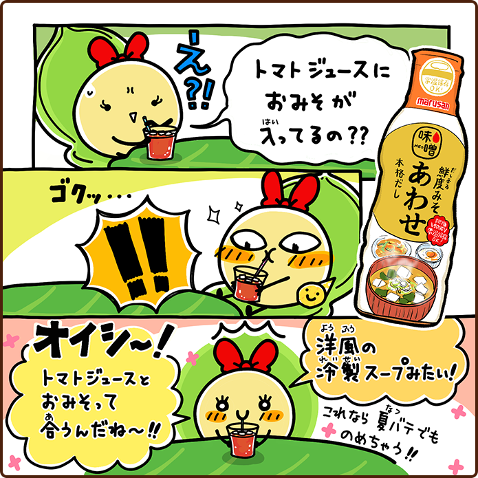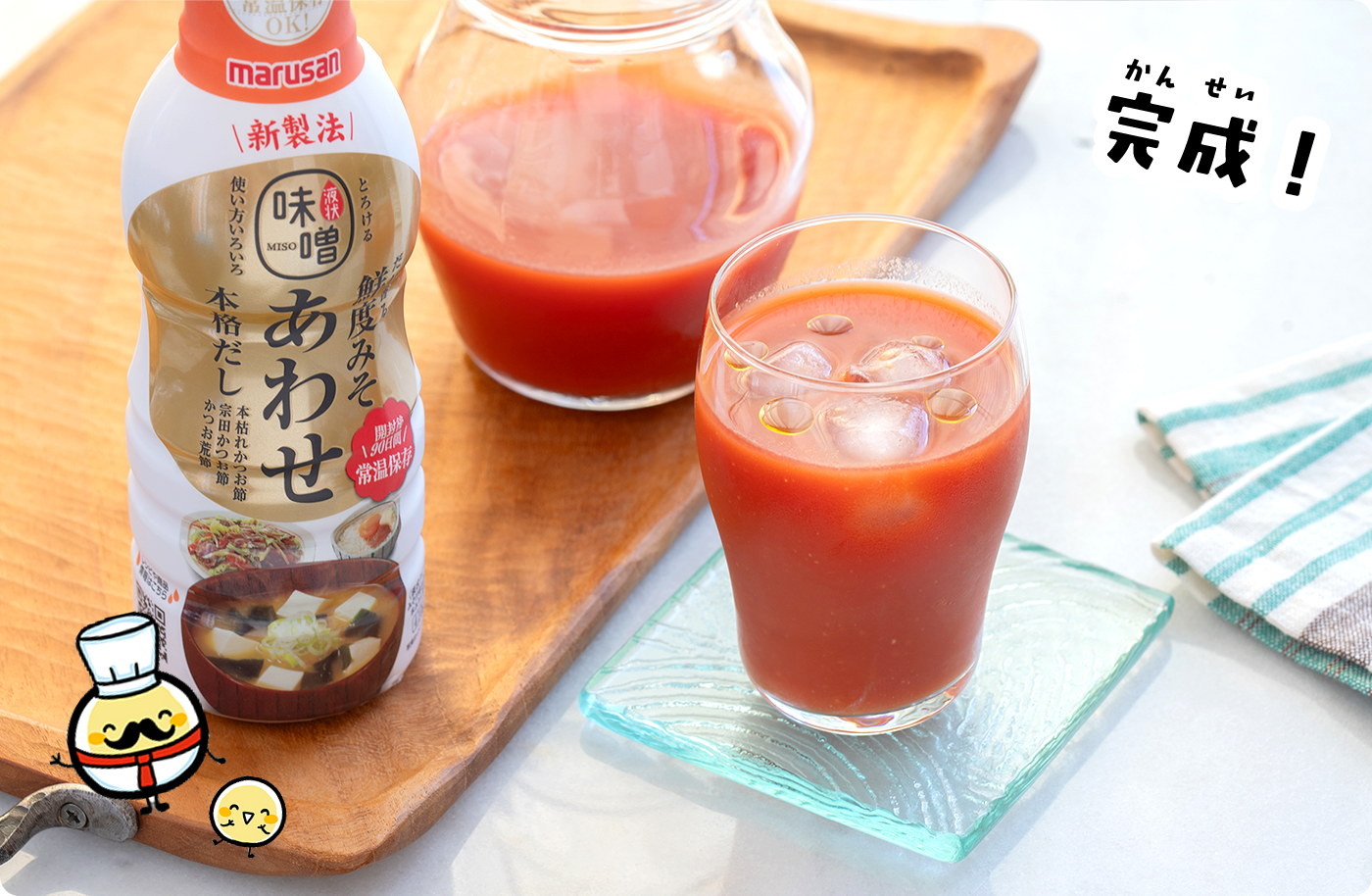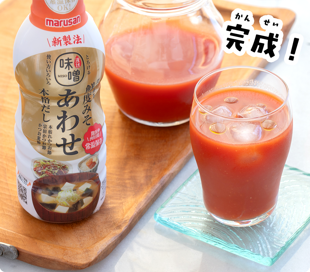 鮮 度 みそ小 さじ2と、トマトジュース200mlを加 えよく混 ぜる。