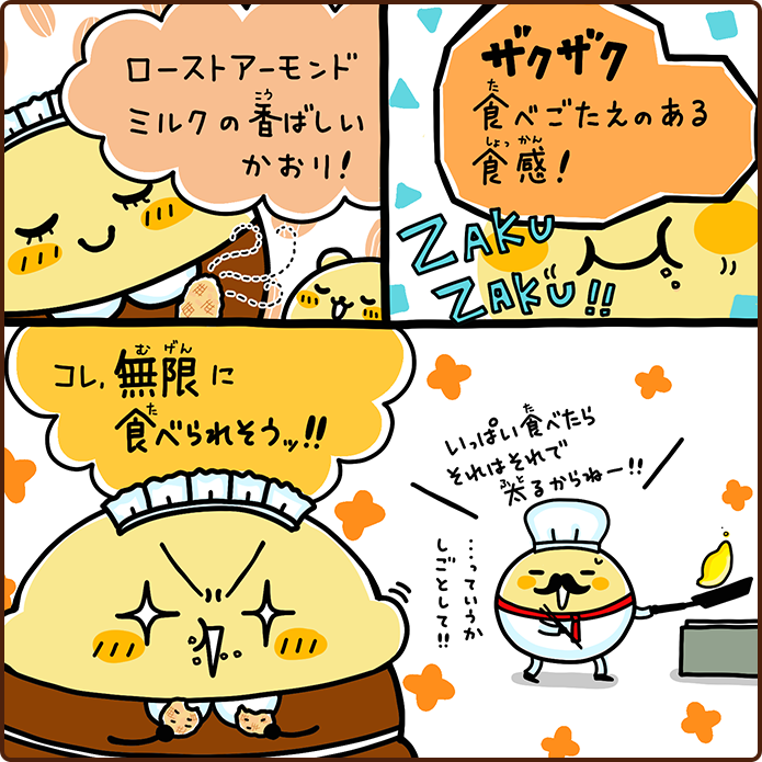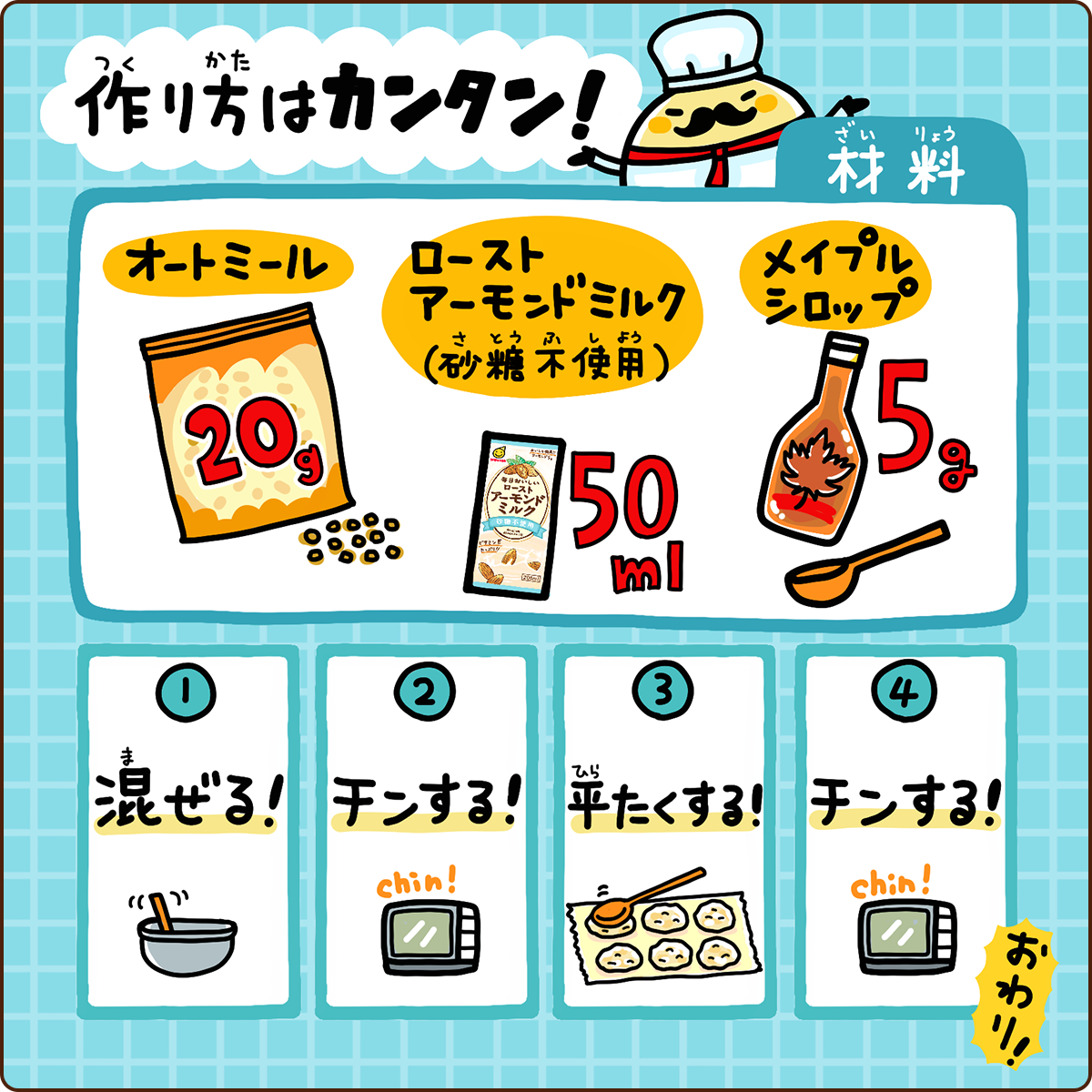 ※冷 蔵 庫 から出 したばかりのアーモンドミルクを使 ったり、生 地 の伸 ばし方 によって加 熱 時 間 が変 わるよ。