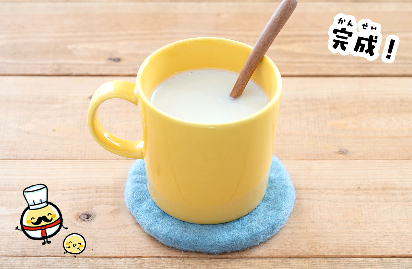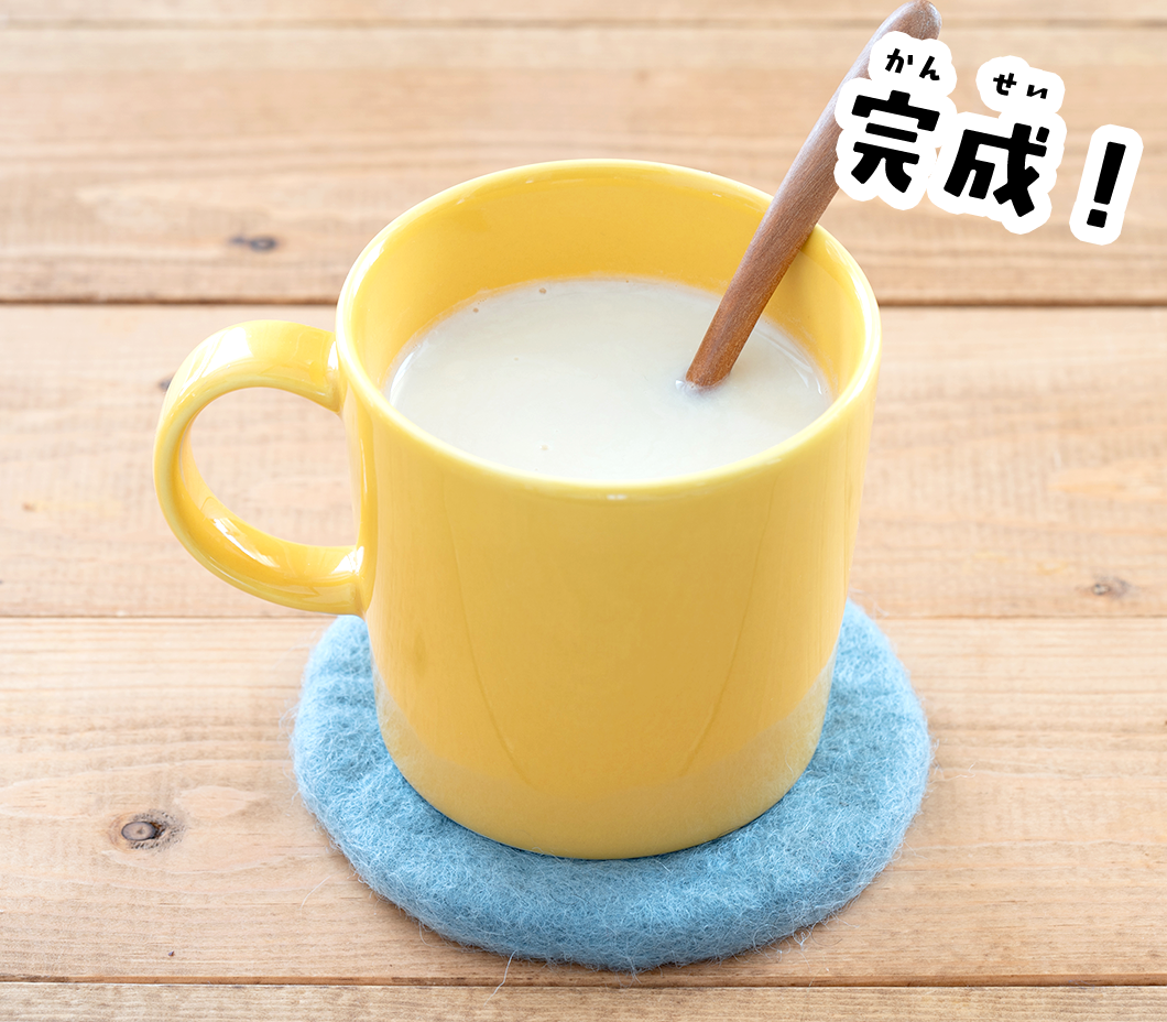 耐 熱 の大 き目 マグカップに材 料 をすべて入 れよく混 ぜる。