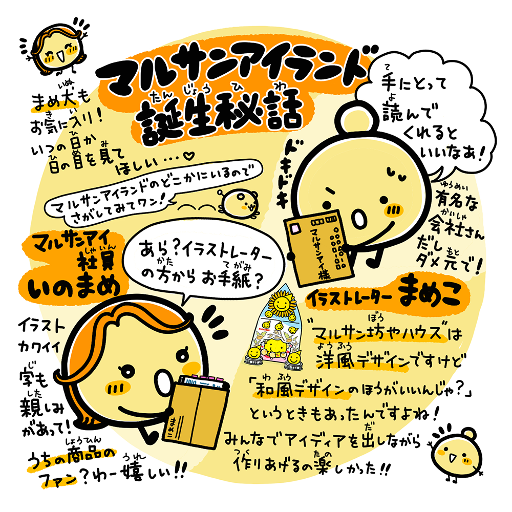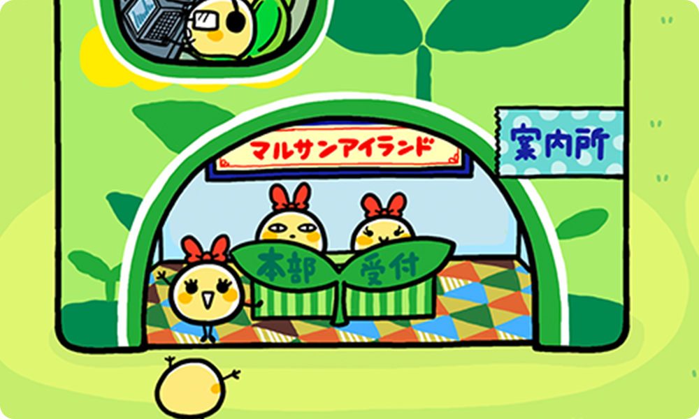 まめこさんとのコラボで、もっとたくさんの人 に「大 豆 」の素 晴 らしさを伝 えたい、まめこさんの描 くイラストやマンガを通 じて、お子 様 にも「マルサンアイ」を親 しみやすい存 在 にしたいという想 いからマルサンアイランドが誕 生 しました。はじまりの物 語 にもあるように「マルサンアイランド」は「マルサン×アイランド」と「マルサンアイ×ランド」と“島 ”と“テーマパーク”の意味 を込 めたWEBサイトにしました。