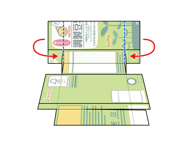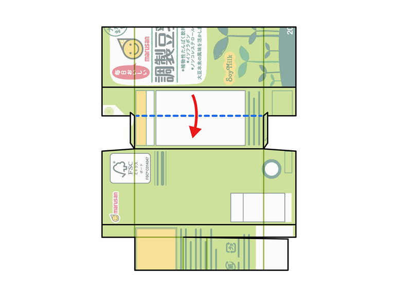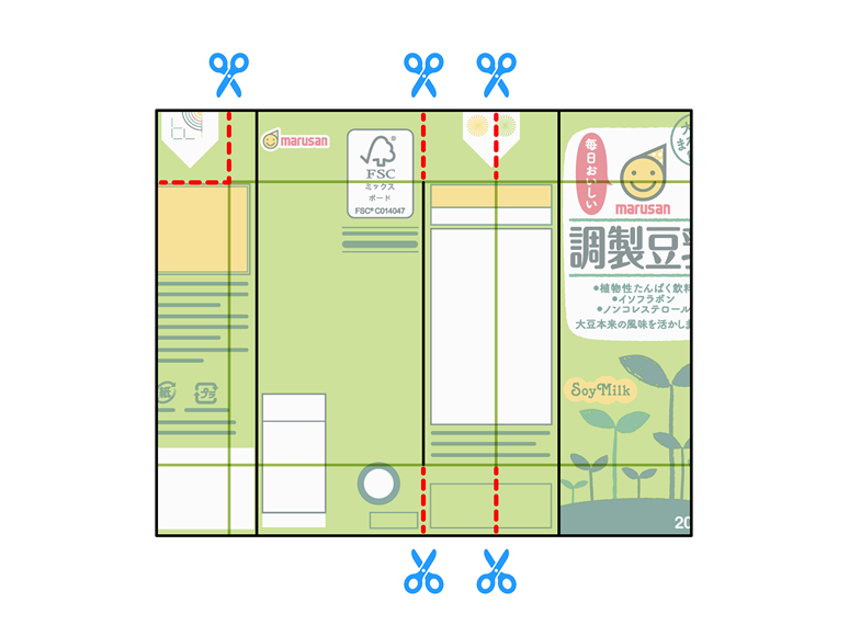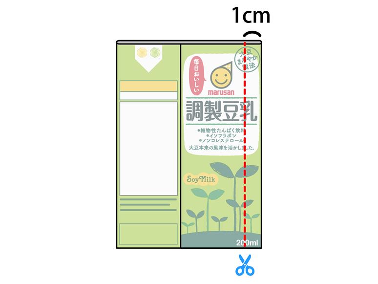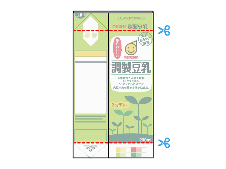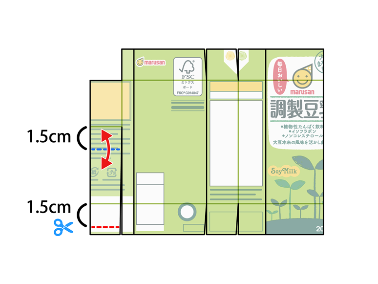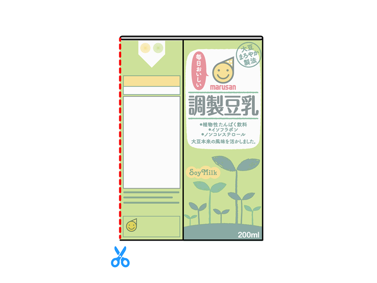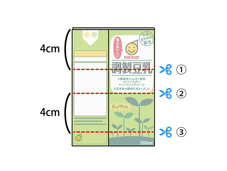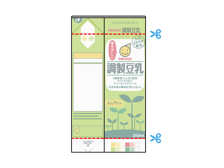 パックを切 り開 いて洗 ってよく乾 かし、上 下 の点 線 部 (底 と上 )を切 り落 とす。