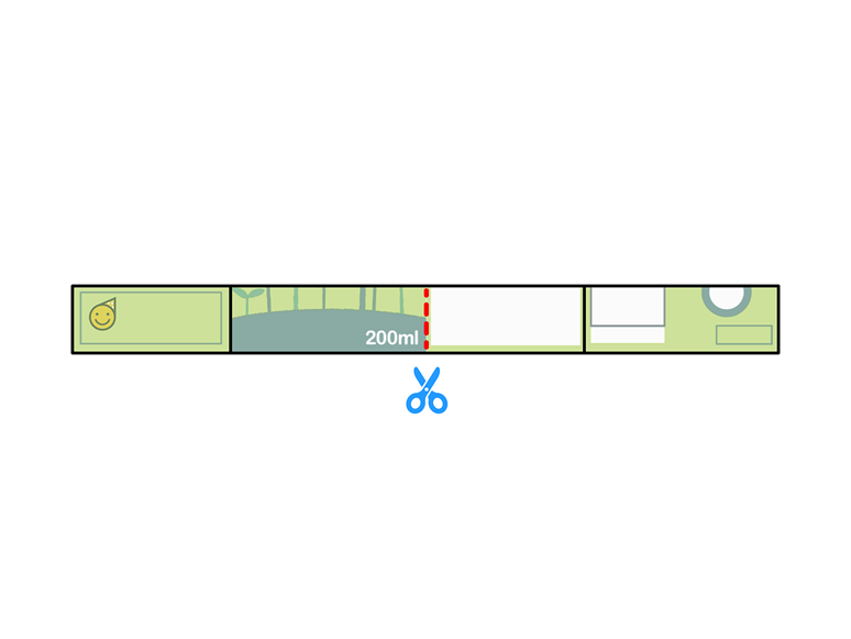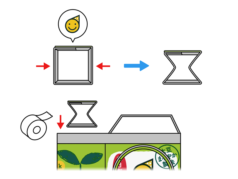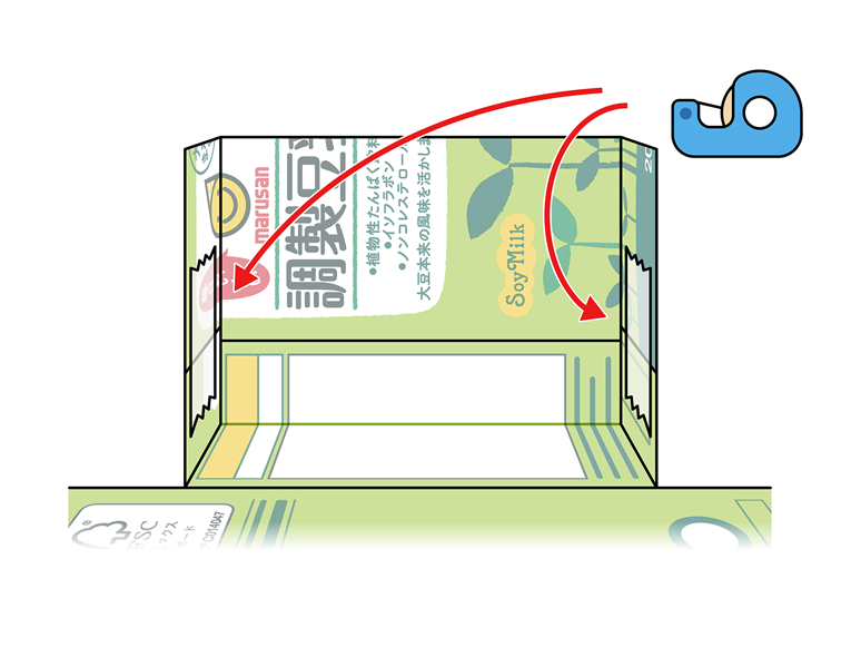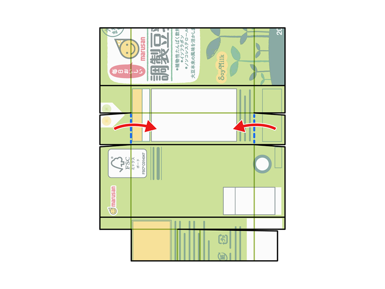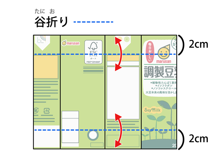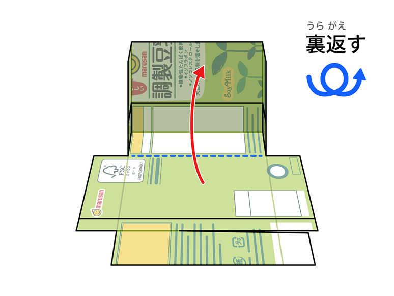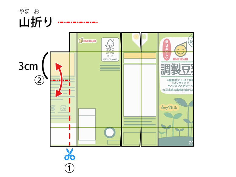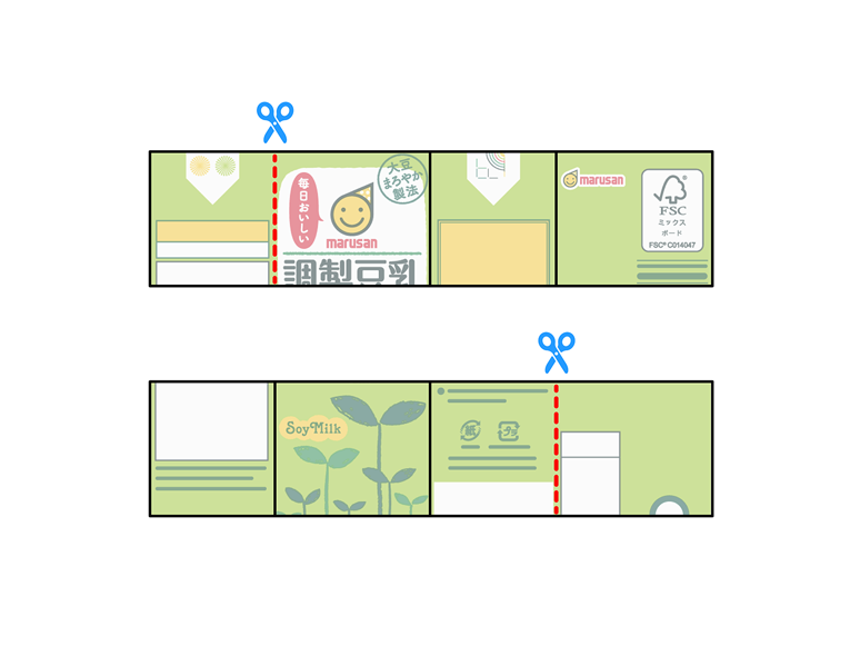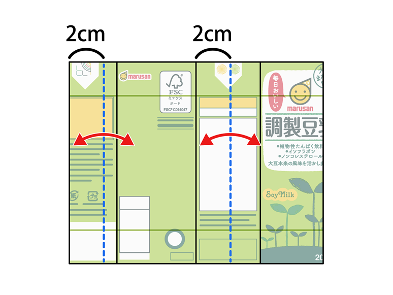 パックを切 り開 いて洗 ってよく乾 かし、上 下 の点 線 部 (底 と上 )を切 り落 とす。