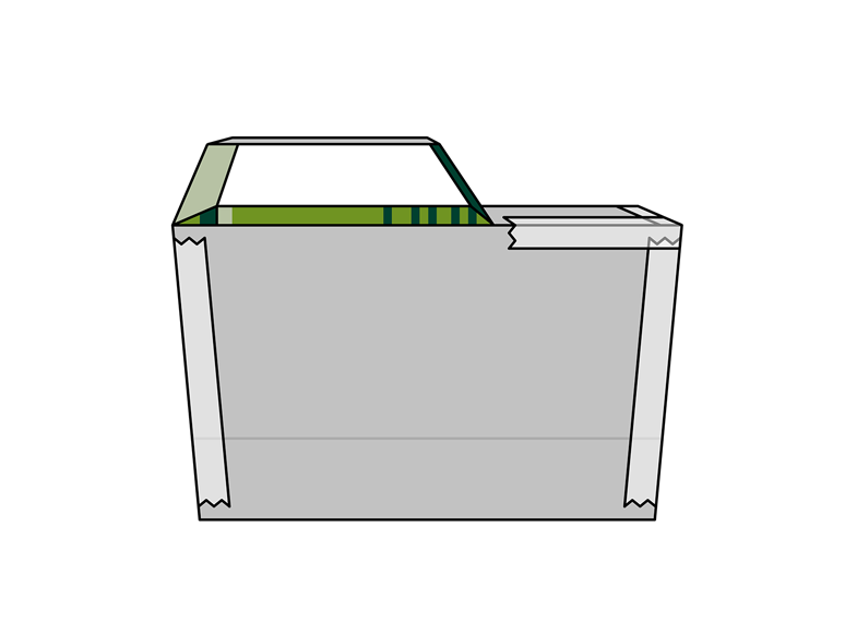 4cm幅 に切 った2つのパックを図 のように開 いて置 き、点 線 部 分 を切 り落 とす。