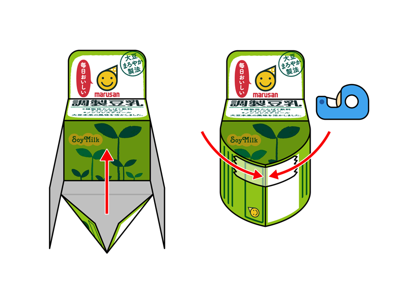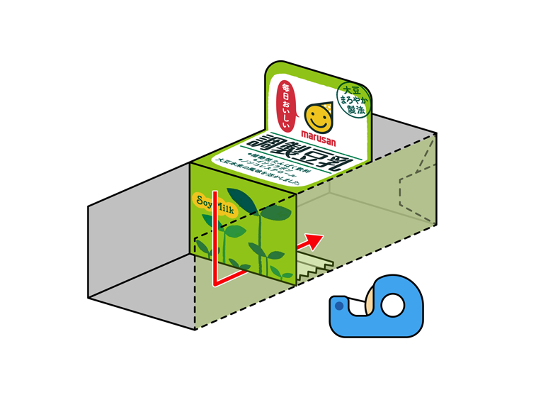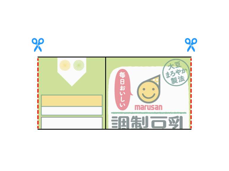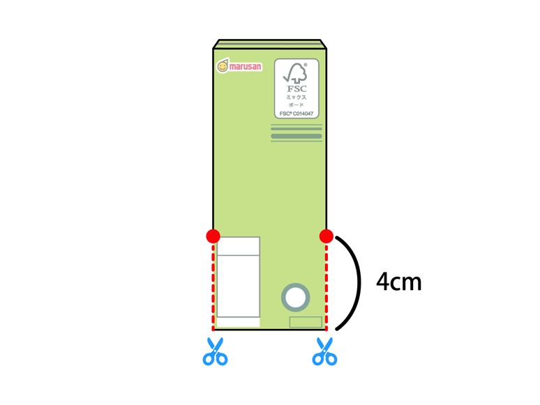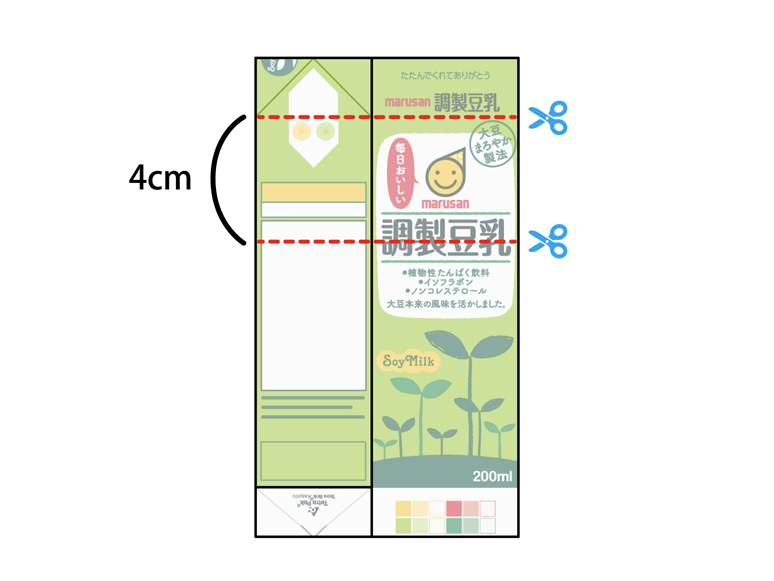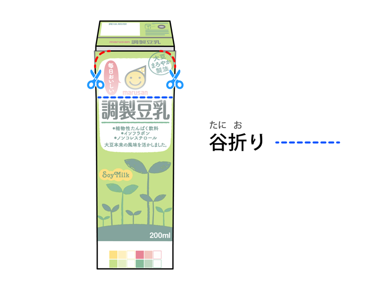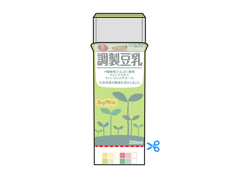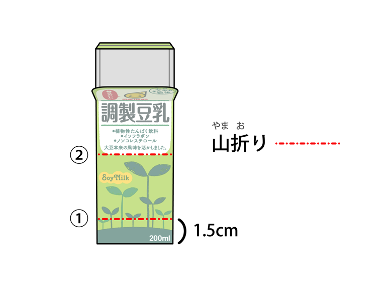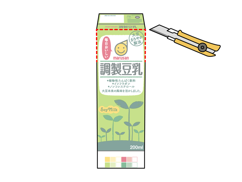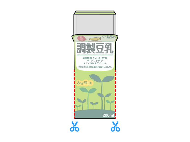 パックの下 のふち部 分 を切 り開 いて洗 い、よく乾 かす。