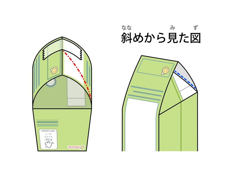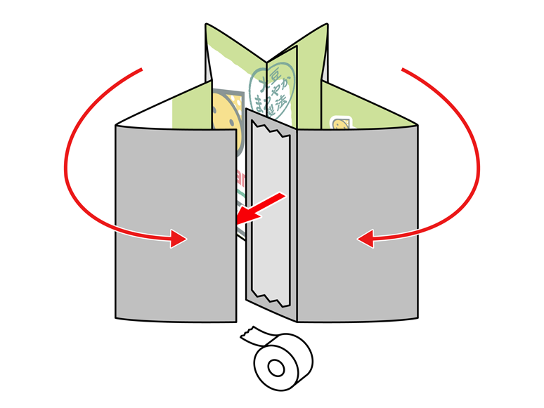 セロハンテープでしっかり留 め、反 対 側 も同 様 に点 線 で折 る。