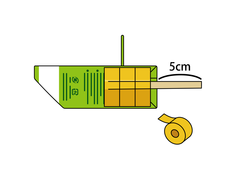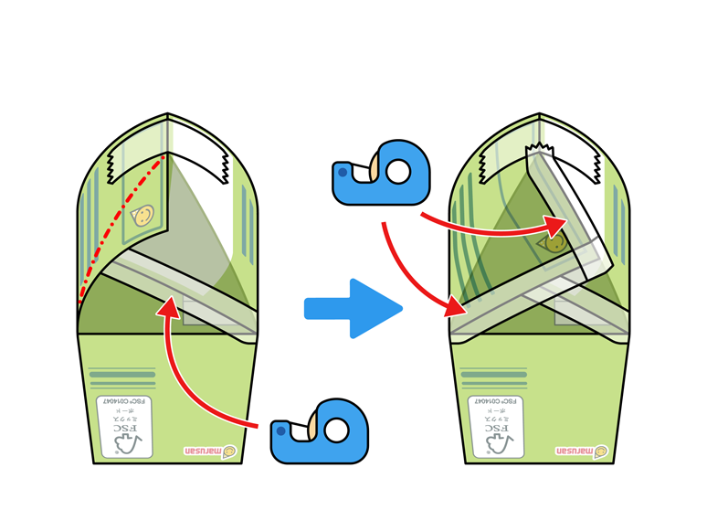 隙 間 が空 かないよう、セロハンテープでしっかり留 める。