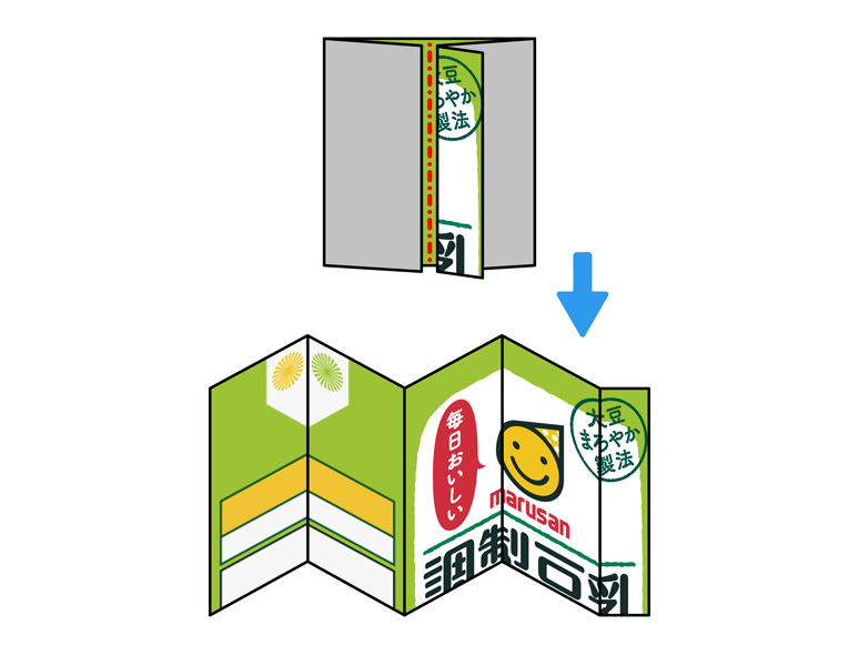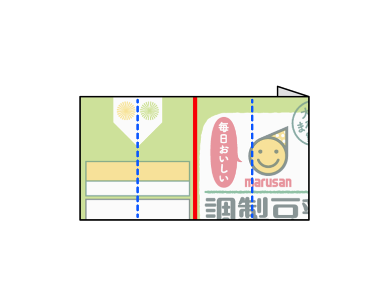 はみ出 た部 分 (青 い線 )で谷 折 りする(ここがのりしろになる)。
