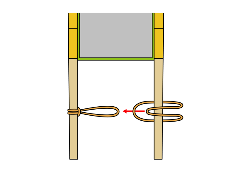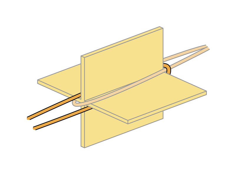 もう片 方 も同 様 に、(輪 ゴムが掛 かっていない面 に)対 角 になるよう輪 ゴムを掛 ける。