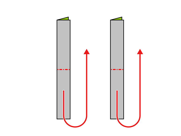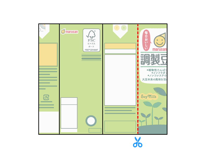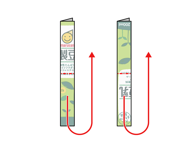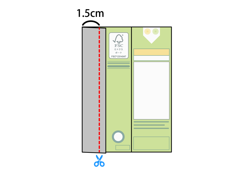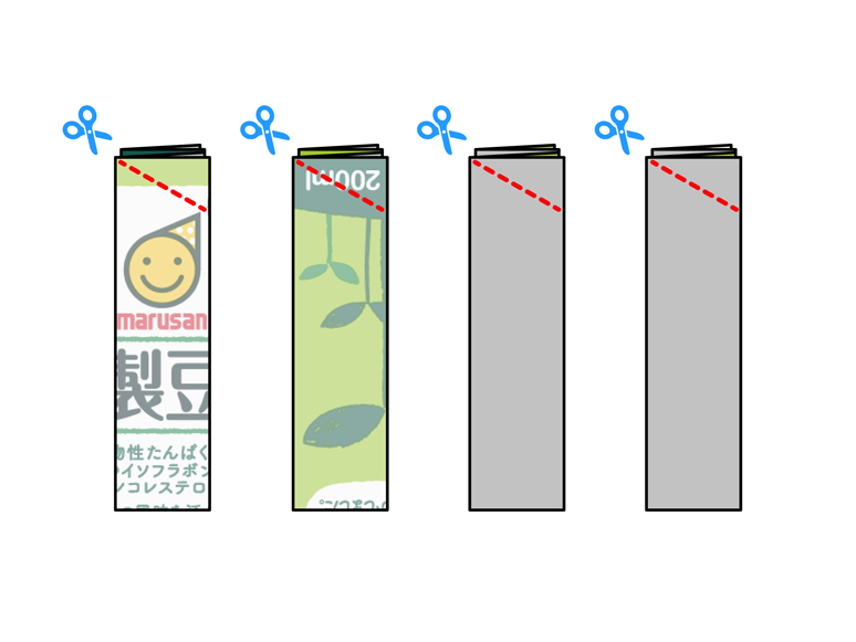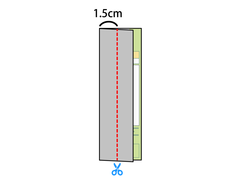 ⑥と⑪を図 のように同 じ向 き(輪 が左 にくるよう)に揃 えて置 き、点線 で斜 めに切 り取 る。