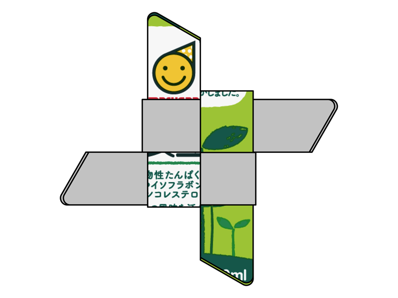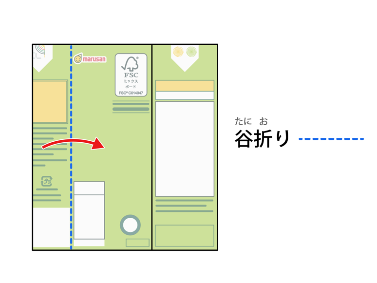 ③と⑤を図 のように置 き、点線 で山折 りする。