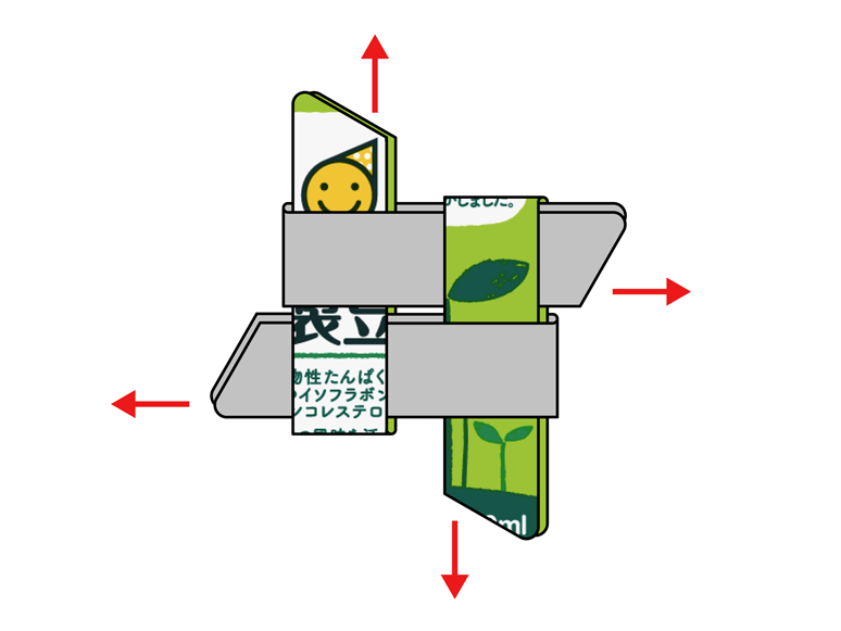 それぞれ矢印 の方向 へ引 いて締 め、形 を整 える。