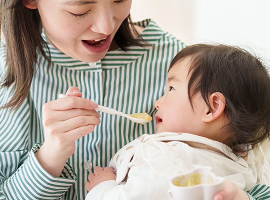 スプーンを嫌がったり、離乳食を口から出してしまうことがあるかもしれませんが、焦らず、その子のペースに合わせて、ゆっくり見守ってあげられるとよいでしょう。