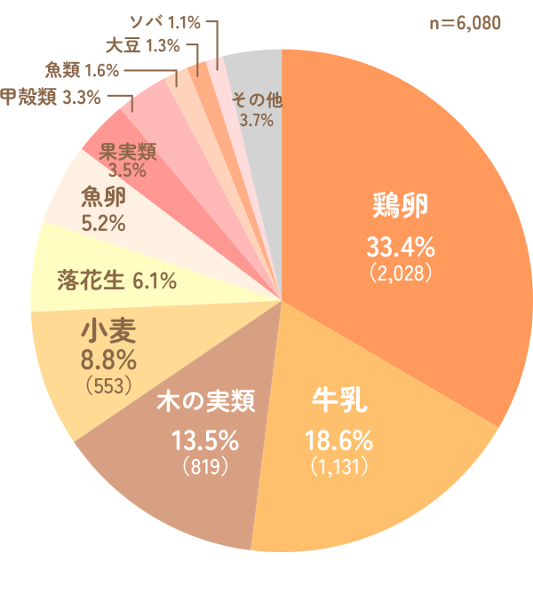 0歳児、1、2歳児において、食物アレルギーの原因食物は、鶏卵、牛乳と続きます。
