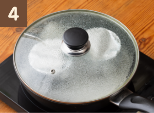 鍋に布巾を敷き器を並べる。器の半分の高さまで水を注ぎ火にかける。沸騰したら蓋をし弱中火で8分蒸す。