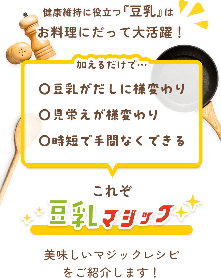 豆乳は混ぜるだけでなく、実はだし代わりにもなります。いつもの料理で味わいに変化をつけることができます。