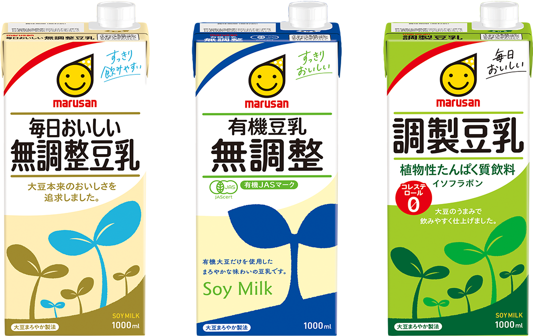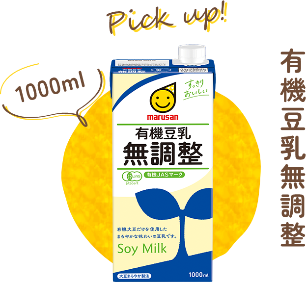 ページ内で掲載している使用豆乳は無調整豆乳・調製豆乳です。どちらの種類を使用してもおいしくお召し上がりいただけます。