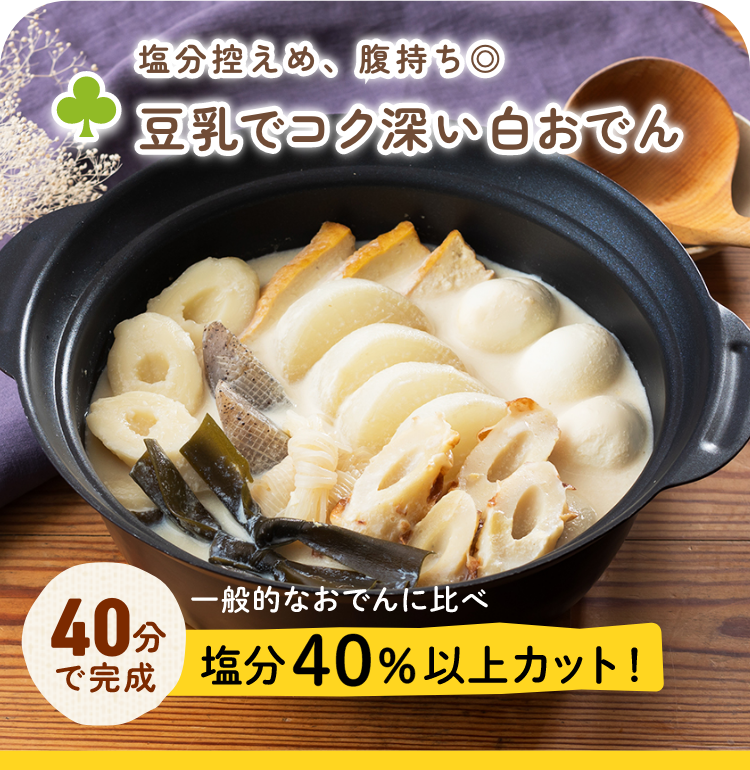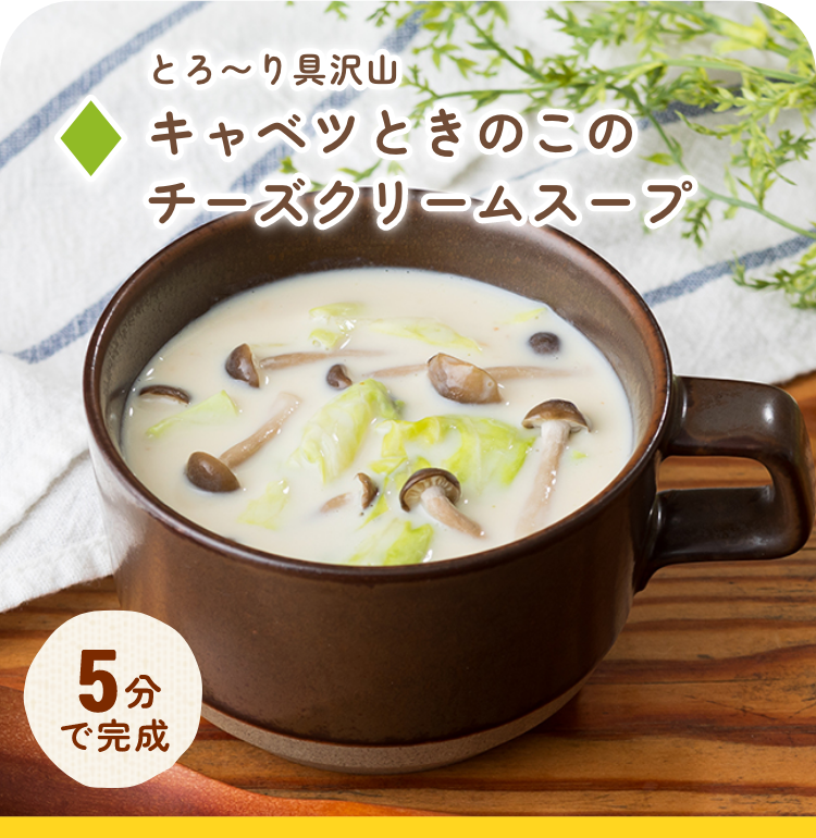 満腹感を感じやすい温かいスープに豆乳を使用することで、植物性たんぱく質がゆっくり吸収されるため、体に負担をかけません。ダイエット中の食事に取り入れると、余計な間食を抑えることができます。