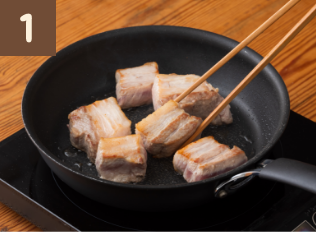 豚バラは4cm幅に切って、サラダ油を引いたフライパンで焼き目をつける。
