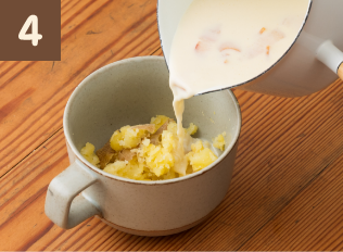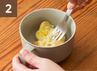 取り出したらじゃがいもをフォークで軽くつぶす。