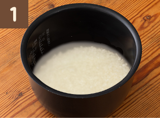 お釜に米、🅰の調味料、豆乳を入れる。水を2合目の目盛りになるまで加える。