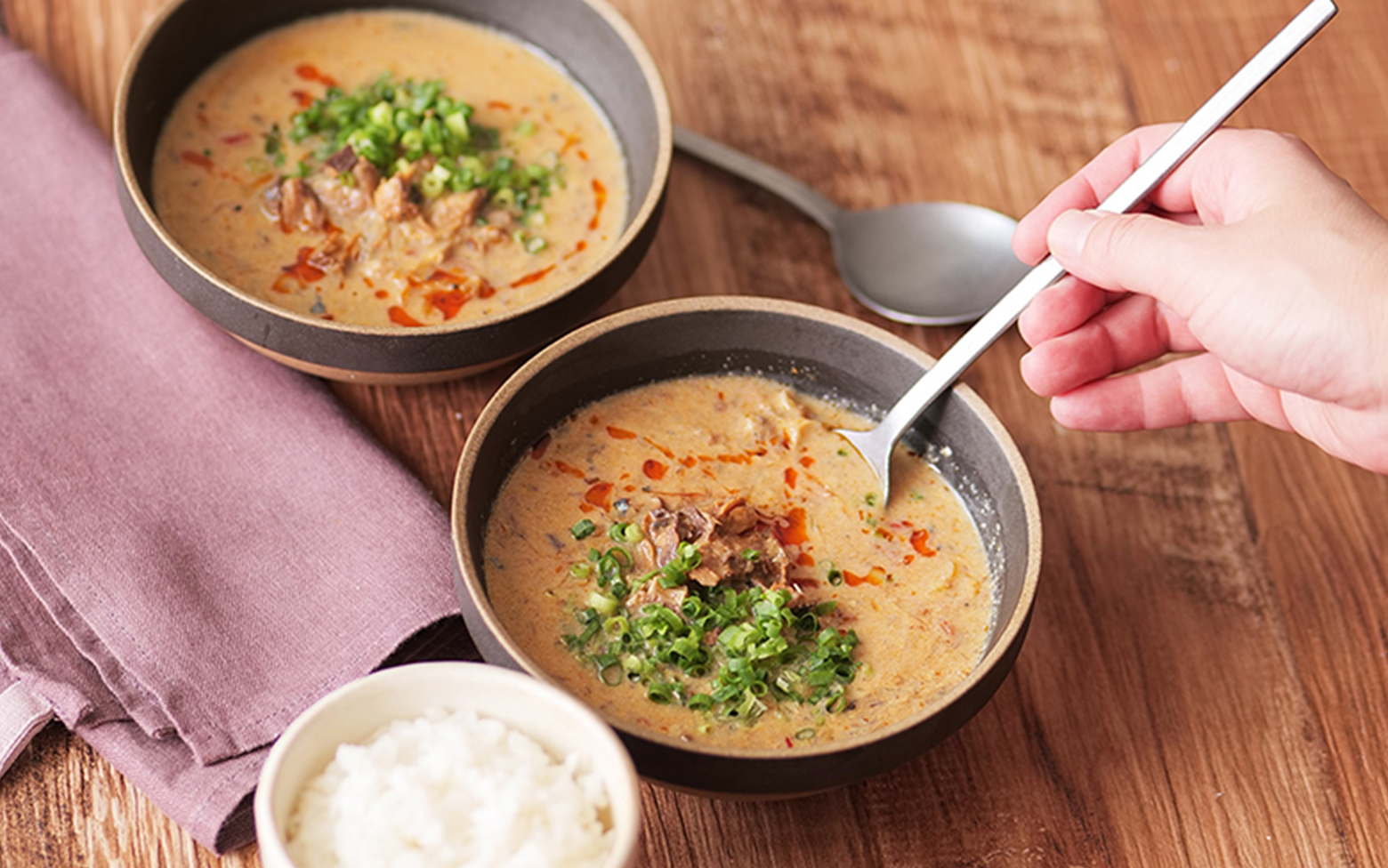 賞味期間が長いさば味噌煮缶詰を使って簡単に作れる担々風スープ。有機豆乳無調整を使うことで、まろやかでコクのある味わいを楽しめます。