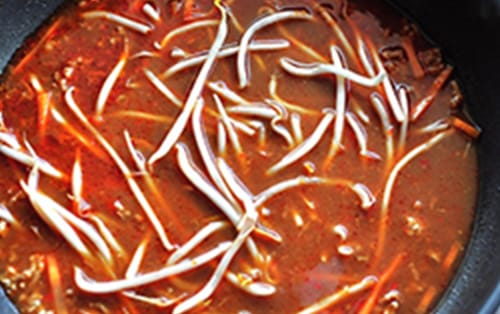 味噌が溶けたらもやしを加えて中火にかけ、ひと煮立ちしたら火を止めます。麺がゆであがるまで蓋をしておきます。