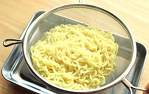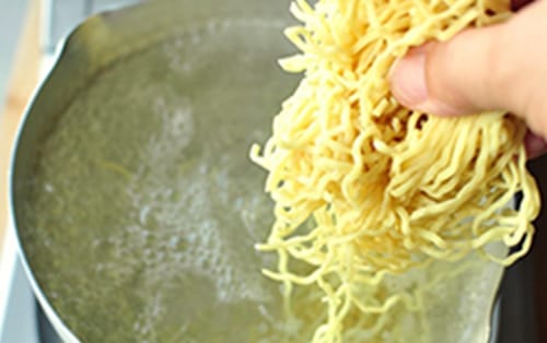 沸騰した湯の中に麺をほぐしながら入れます。パッケージに表記されている時間通りにゆでます。