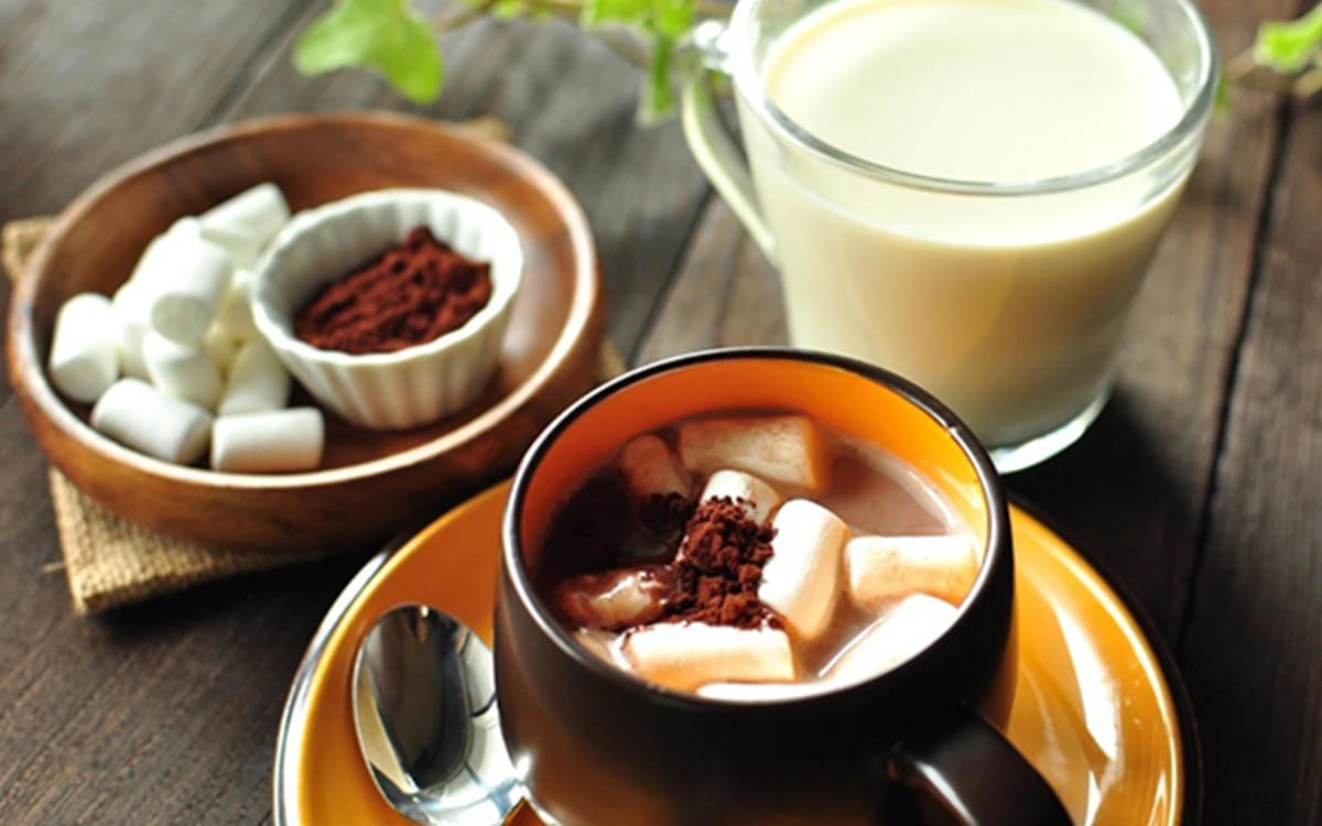 普段、お湯や牛乳で作るココアを豆乳に置き換えます。ココアはたんぱく質や鉄分などを含んでおり、また豆乳との相性はぴったりです。マシュマロがココアの温かさで溶けて甘みが増し、おいしく飲めますよ。