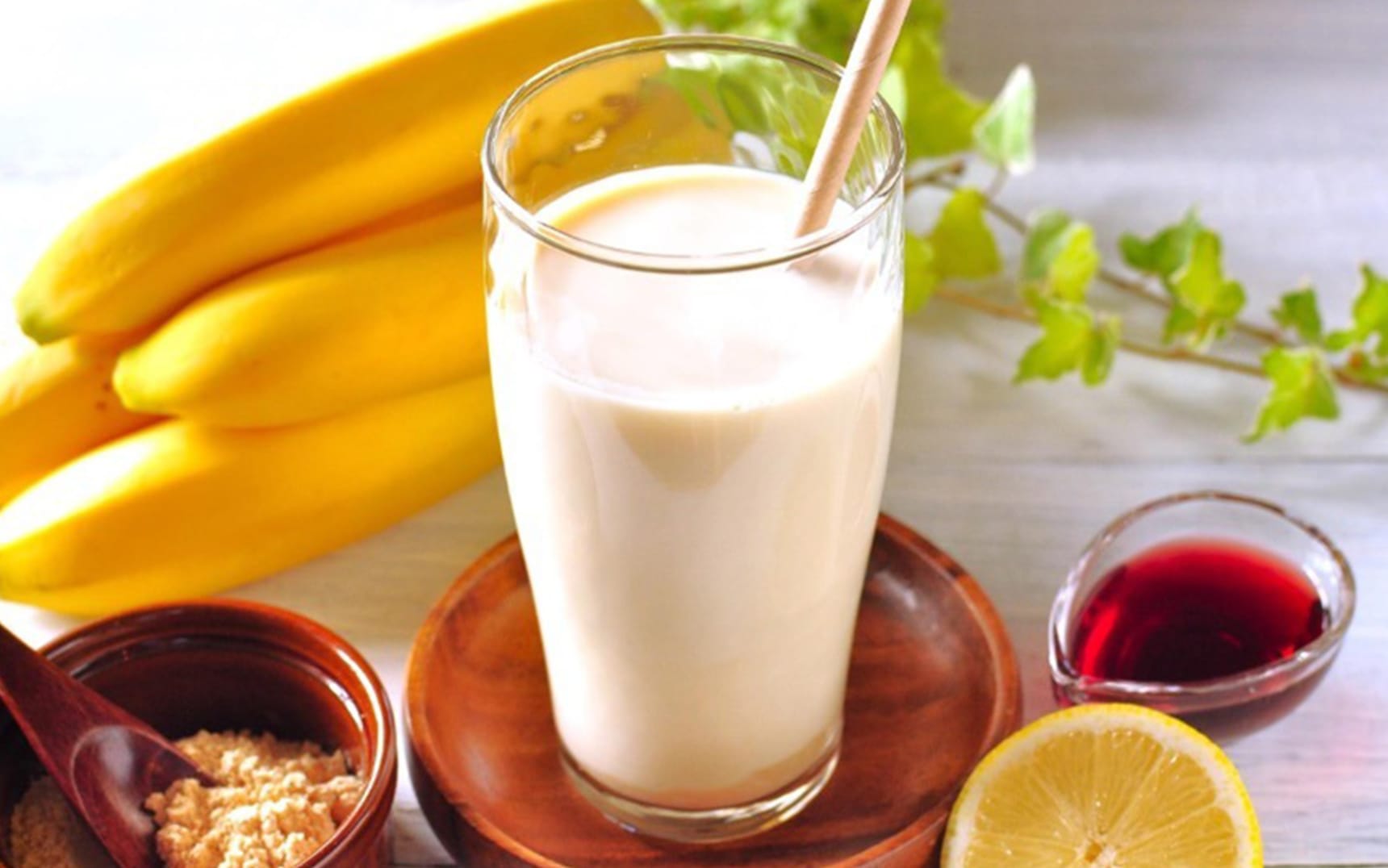 豆乳は独特のにおいがあり苦手という方には、バナナを入れるのがおすすめ。バナナの甘みで豆乳の風味が和らぎ、とても飲みやすくなります。また、お好みのジュースなどで割ってもさっぱりとした果汁が効いておいしく飲めますよ。バナナが褐変するとジュースの表面の色が変わりやすいため、レモン果汁を加えるのがポイント。