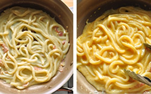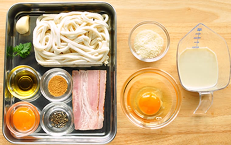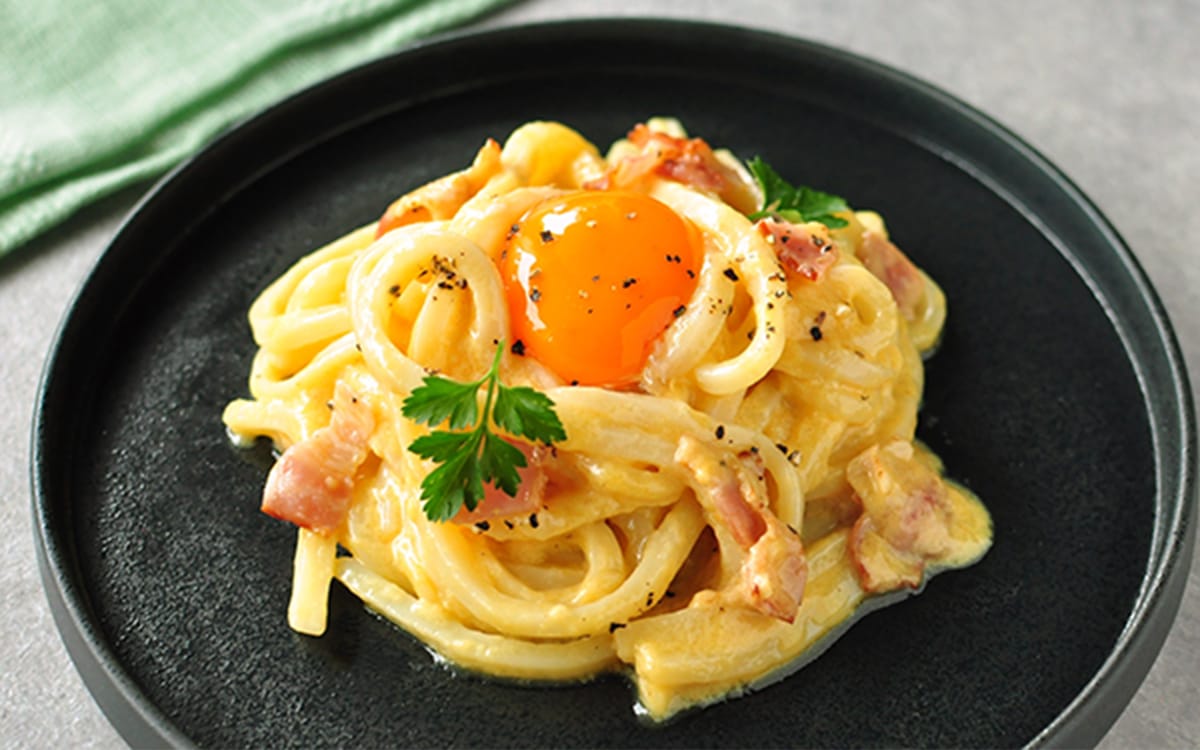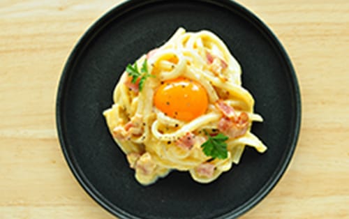 3.うどんでイタリアン。濃厚カルボナーラうどん