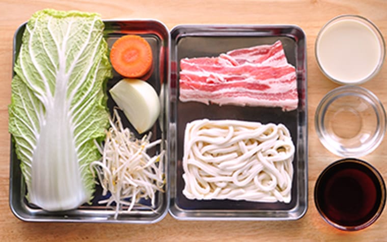 豆乳ベースのつゆで具材とうどんを煮込むだけ!お肉と野菜がたっぷり食べられるまろやかな味わいのひと品です。味付けはめんつゆのみでとっても手軽。豚バラのコクと旨みが溶け込むつゆがうどんに絡み、止まらなくなるおいしさです。
