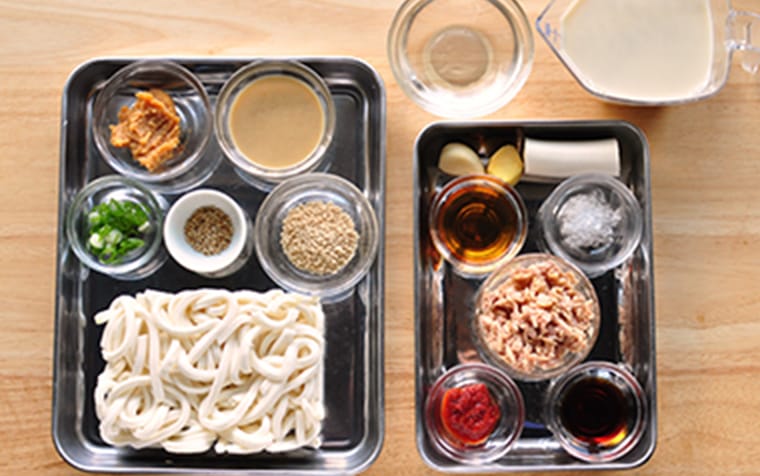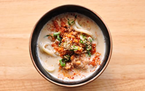 ストックに便利なツナ缶を使って手軽に作れる旨辛担々うどんです。調製豆乳のほんのりとした甘味がごま味噌の風味にぴったり。練りごま入りのピリ辛スープはコクたっぷりで飲み干したくなるおいしさです。