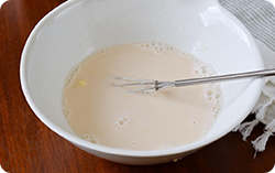 アーモンドミルクを加えて、泡だて器などでよく混ぜ合わせます。