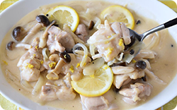 2.レモン風味でさわやか!チキンときのこのアーモンドミルク煮