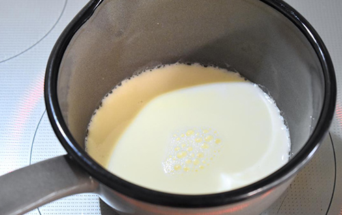 鍋で豆乳を弱火から中火で温め、沸騰する直前で火を止めます。