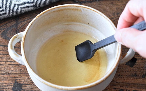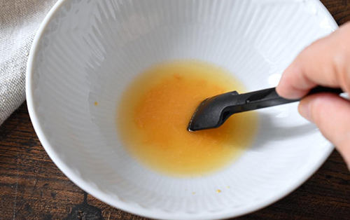 器にチキンコンソメと酢を入れて、軽く混ぜ合わせます。